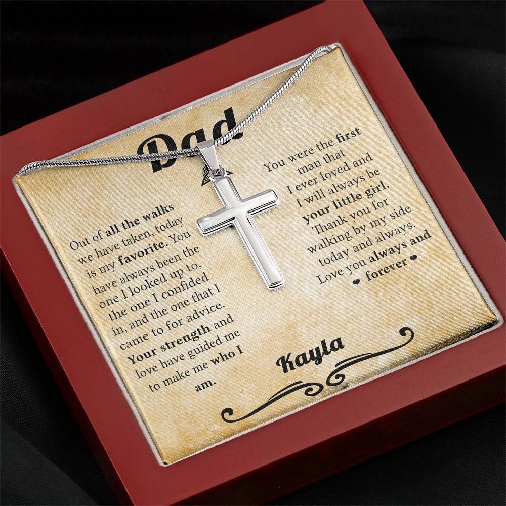 "Out of all the walks we have taken, today is my favorite. You have always been the one I looked up to, the one I confided in, and the one that I came to for advice. Your strength and love have guided me to make me who I am. You were the first man that I ever loved and I will always be your little girl. Thank you for walking by my side today and always. Love you always and forever."